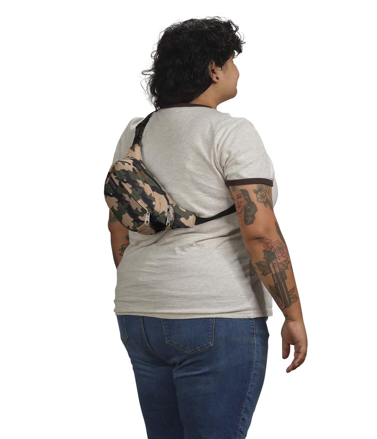 La cangurera Fifth Avenue de Jansport permite tener todo lo que necesitas a la mano. Tiene una correa ajustable que permite que puedas usarlo en la cintura o cruzada por la espalda y cuenta con un bolsillo frontal con cierre.