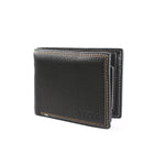 Compartimento principal plegable dividido por bolsa de cierre para monedas y compartimentos verticales para tarjetas.