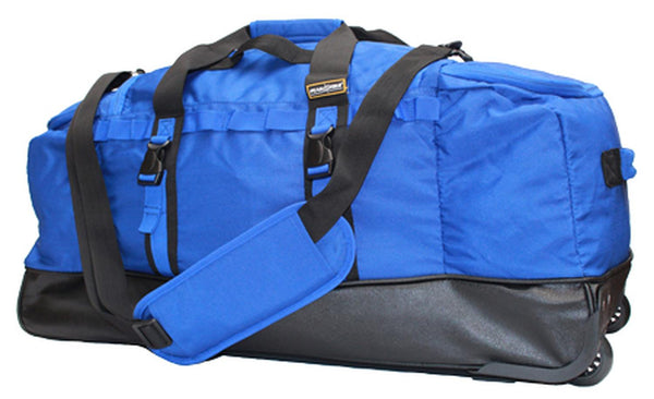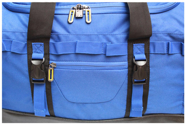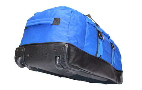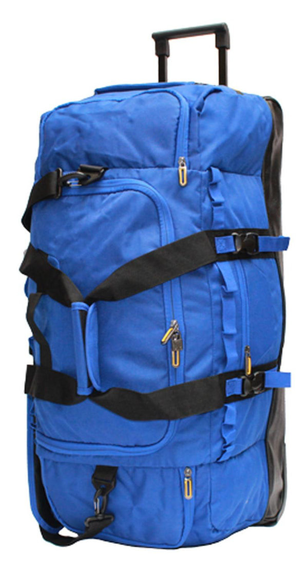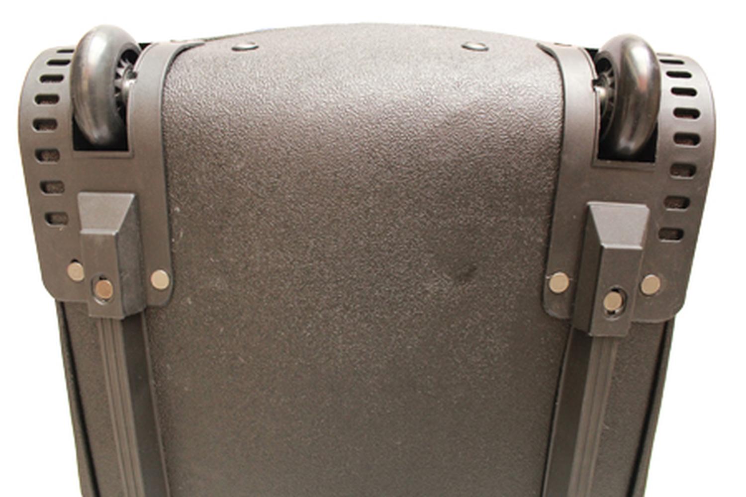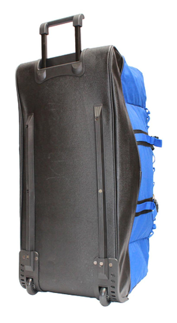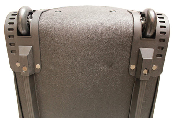 Carro de mango telescópico, compartimentos laterales de cierre, cierre frontal, lateral, trasero y asa lateral.