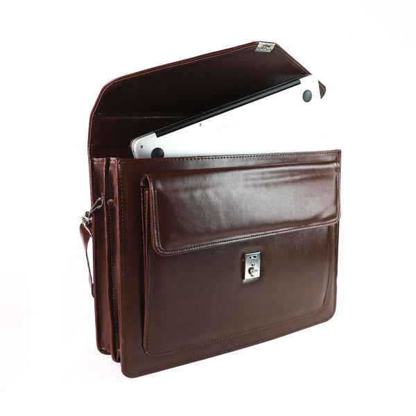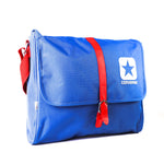 Compartimento principal con separación doble y cierre, chapa, asa y tirante desmontable.