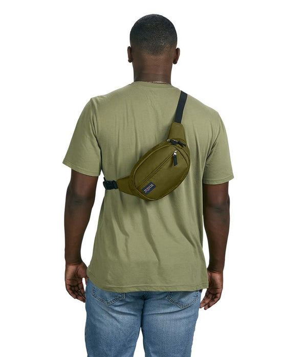La cangurera Fifth Avenue de Jansport permite tener todo lo que necesitas a la mano. Tiene una correa ajustable que permite que puedas usarlo en la cintura o cruzada por la espalda y cuenta con un bolsillo frontal con cierre.