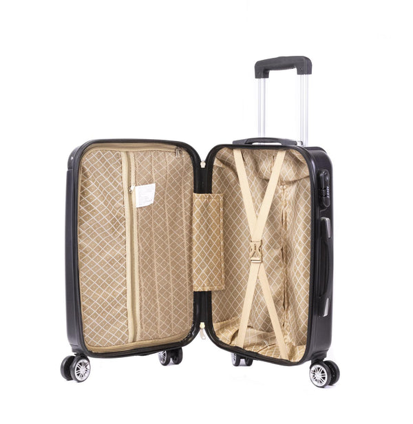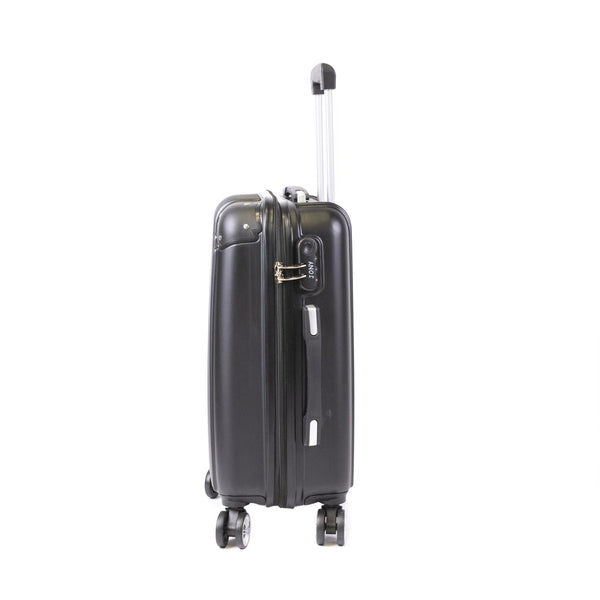 Maleta elaborada en policarbonato, candado de seguridad de combinación, sistema de llantas 360 de 8 llantas, amplio compartimento principal con organizadores.