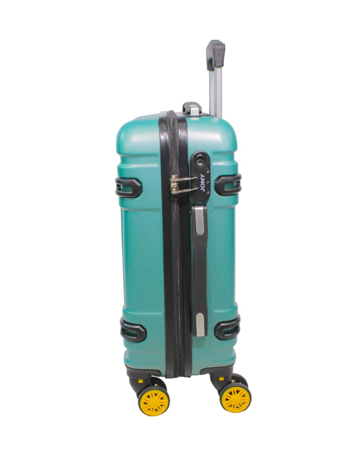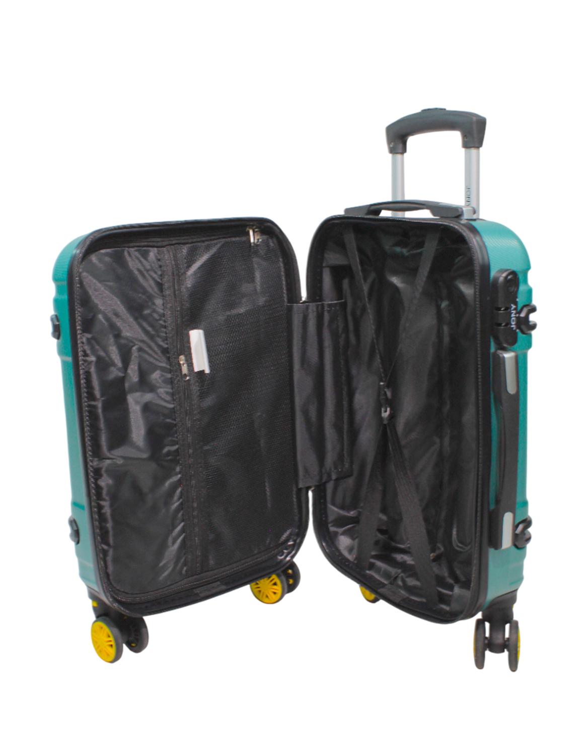 Maleta de cabina ligera de alta resistencia. Sistema de ruedas spinner 360°. Asa telescópica y candado de seguridad. Fabricada en policarbonato ABS para tener alta resistencia y durabilidad, protección al interior.