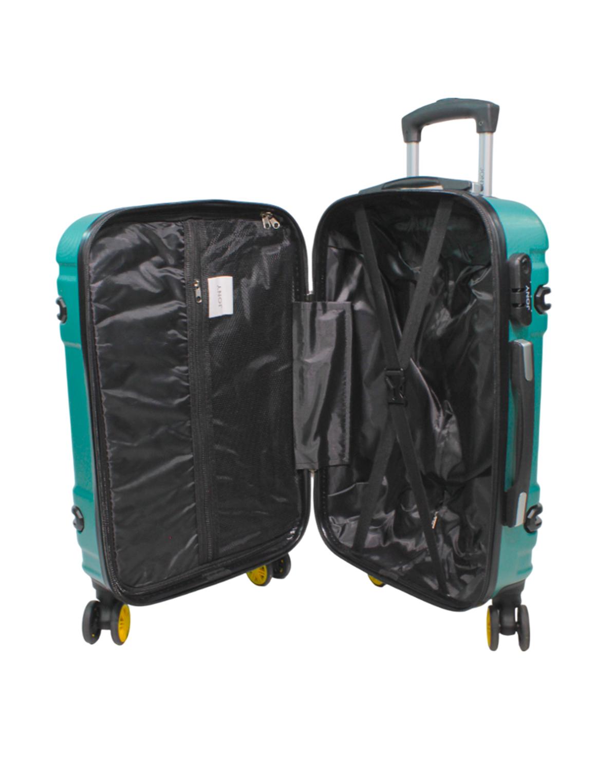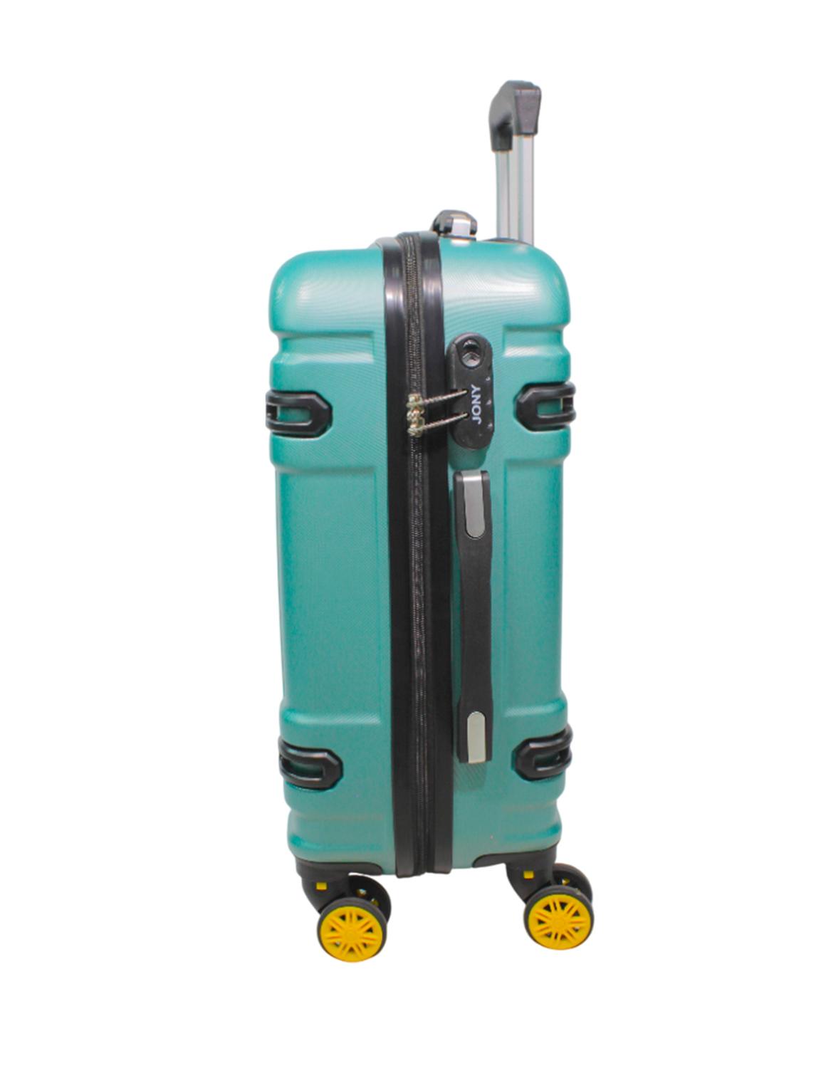 Maleta de cabina ligera de alta resistencia. Sistema de ruedas spinner 360°. Asa telescópica y candado de seguridad. Fabricada en policarbonato ABS para tener alta resistencia y durabilidad, protección al interior.
