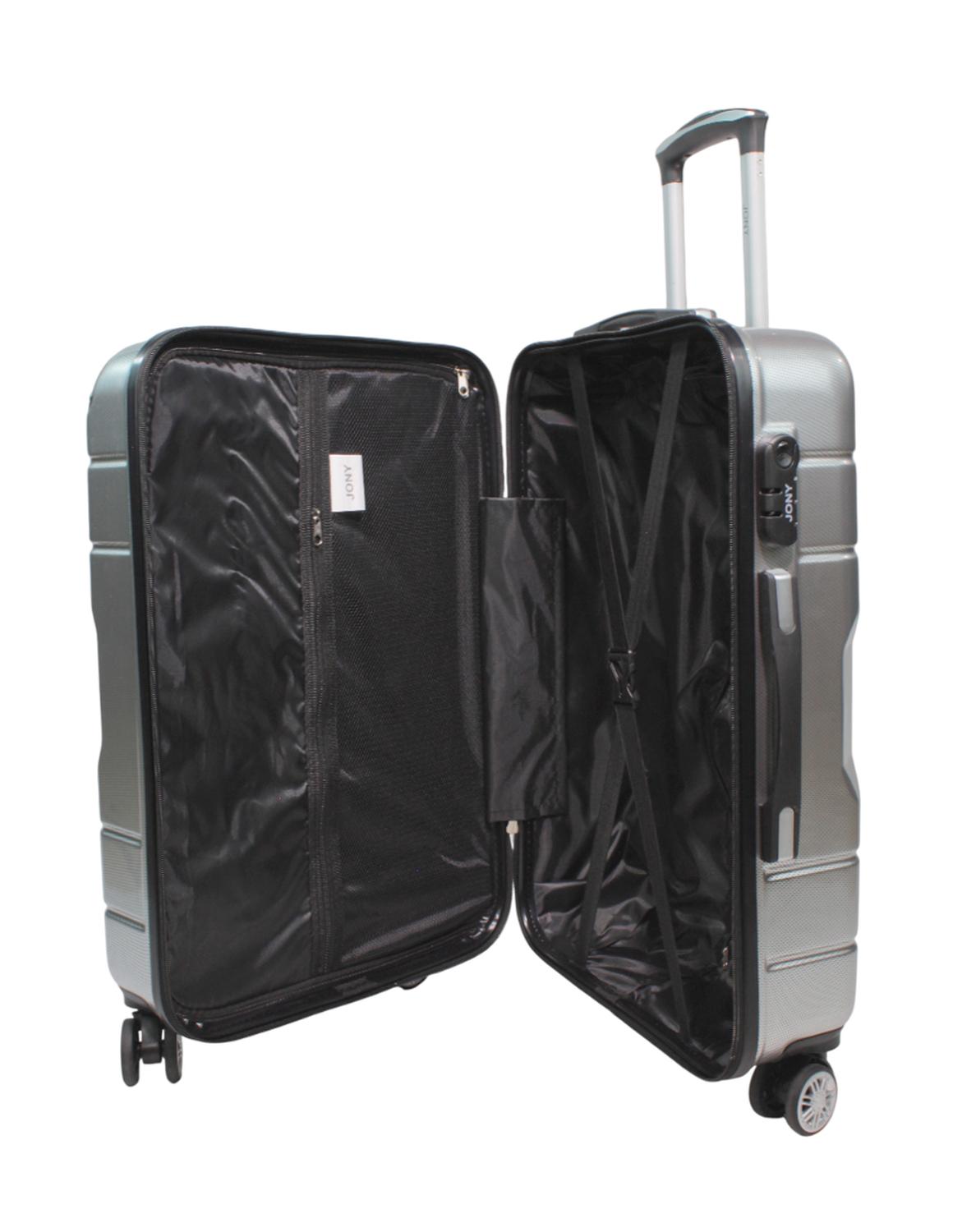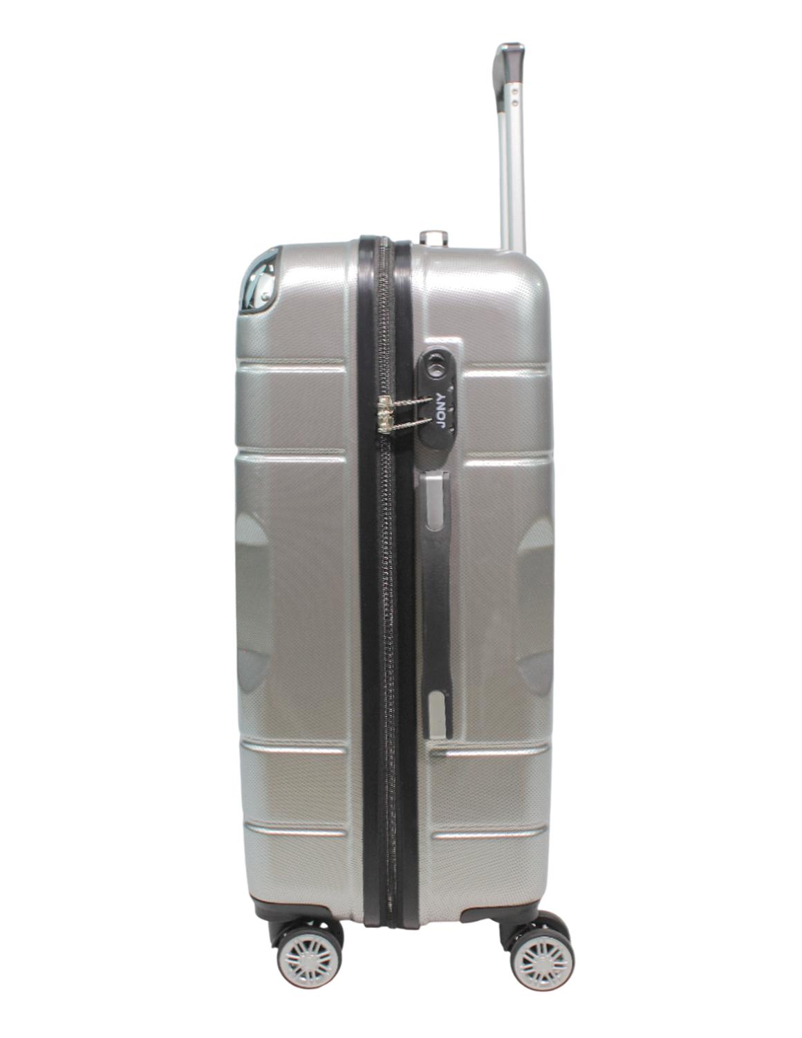 Maleta Jon 041 24" PlataCódigo:6405JON024PLCaracterísticas: Maleta de ligera de alta resistencia. Sistema de ruedas spinner 360°. Asa telescópica y candado de seguridad. Fabricada en policarbonato ABS para tener alta resistencia y durabilidad, protección al interior.Color:PlataDimensiones: Alto: 66 Ancho: 42.00 Profundidad: 27 Maleta de ligera de alta resistencia. Sistema de ruedas spinner 360°. Asa telescópica y candado de seguridad. Fabricada en policarbonato ABS para tener alta resistencia y durabilidad, protección al interior.