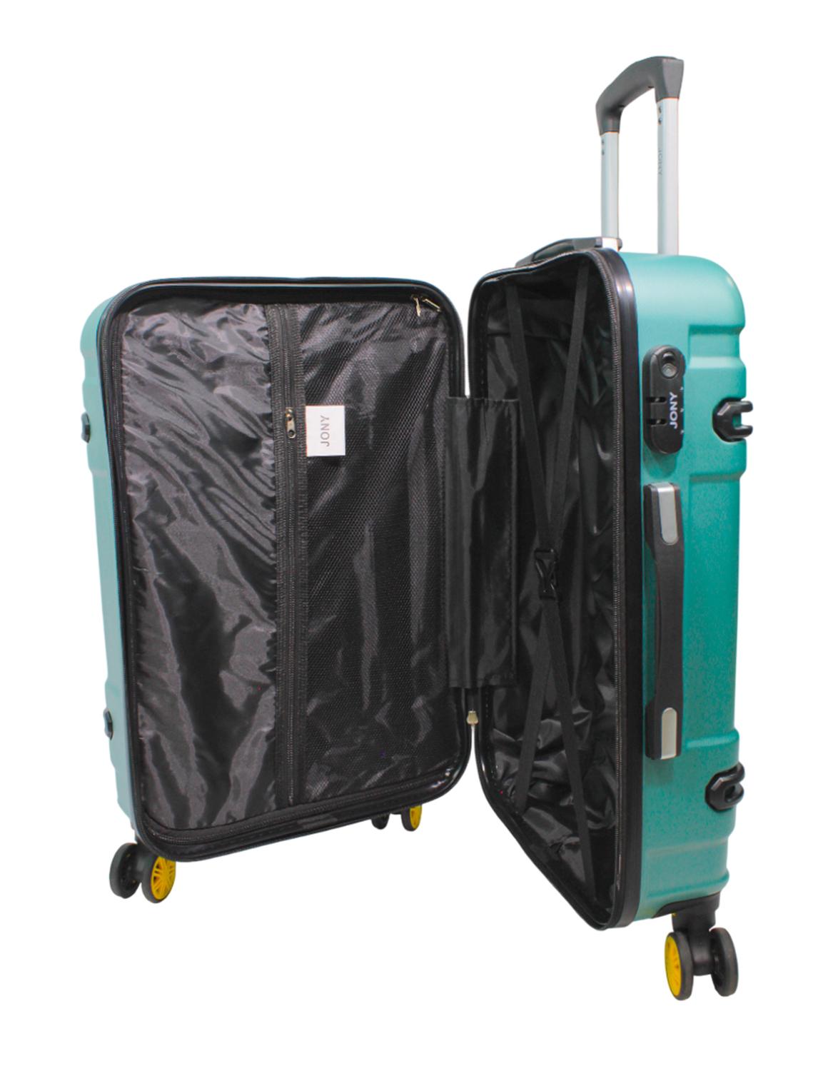 Maleta de ligera de alta resistencia. Sistema de ruedas spinner 360°. Asa telescópica y candado de seguridad. Fabricada en policarbonato ABS para tener alta resistencia y durabilidad, protección al interior.