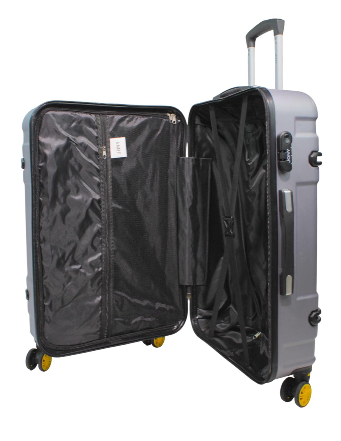 Maleta de ligera de alta resistencia. Sistema de ruedas spinner 360°. Asa telescópica y candado de seguridad. Fabricada en policarbonato ABS para tener alta resistencia y durabilidad, protección al interior.