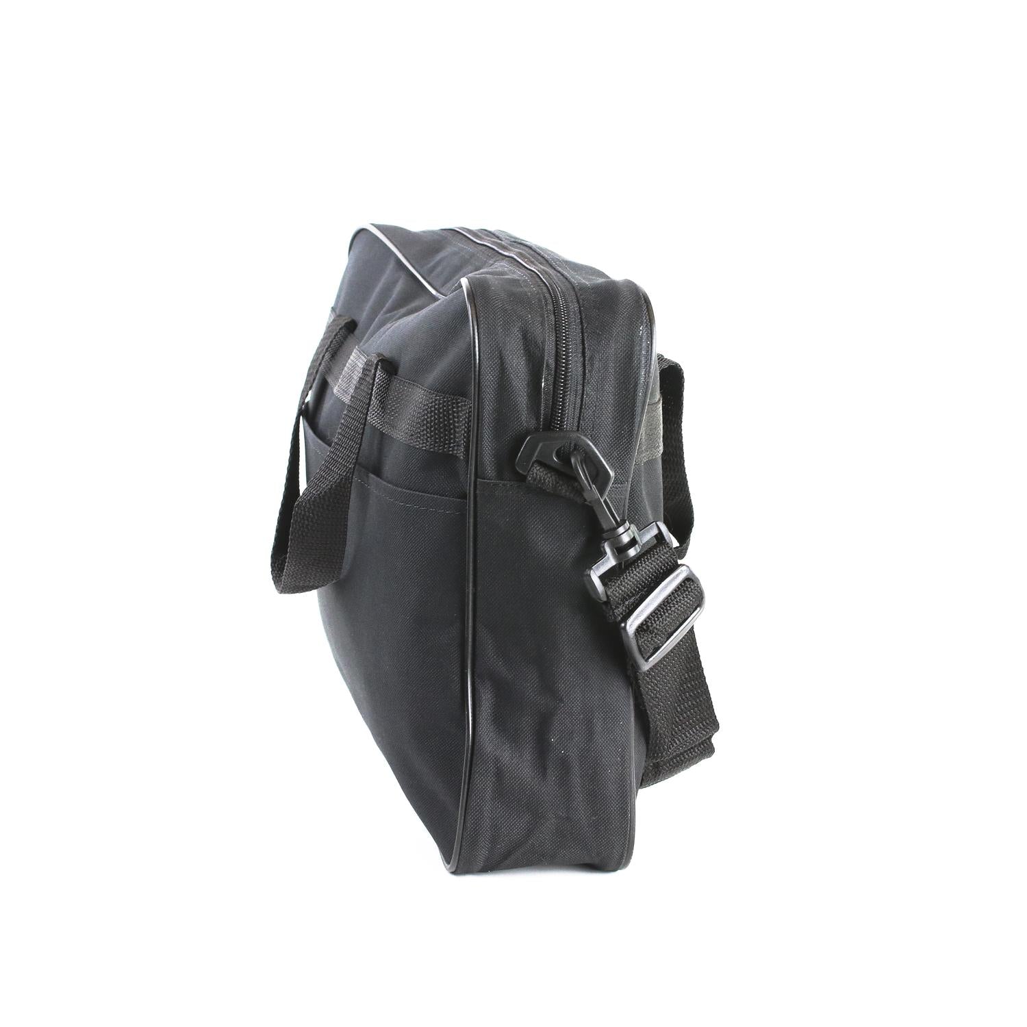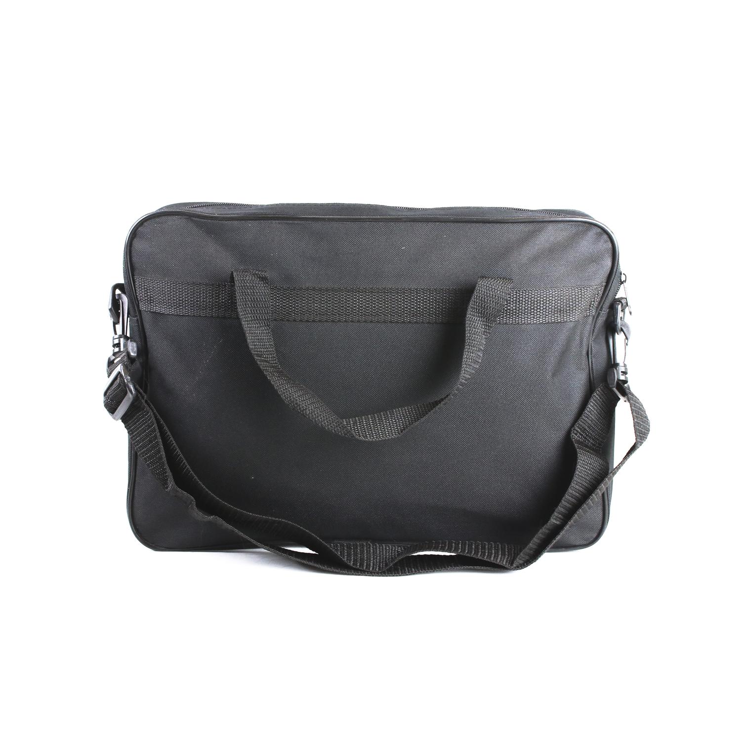 • Portafolio De 24 cm alto por 33 cm ancho y 7 cm fondo, fabricado en poliéster 600, con compartimiento principal, Bolsa frontal y tirante Desmontable